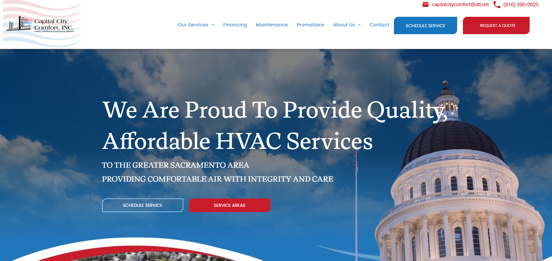 Capital City Comfort, Inc. is your ultimate HVAC specialist for heating and air conditioning needs. We offer routine maintenance checks and emergency repair services for both residential and commercial clients. Our cost-effective solutions are designed to suit your needs and ensure maximum comfort. Established in 2016.